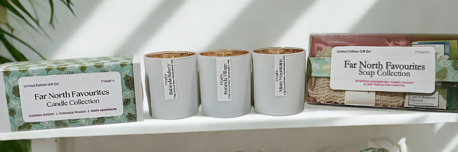 FNQgifts is a small-batch candle and soap studio based in Babinda, Far North Queensland. Every product is thoughtfully designed to reflect the lush landscapes, tropical climate, and relaxed lifestyle of the region